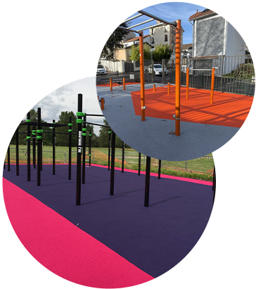 Pour aménager votre propre aire de street workout, plusieurs solutions vous seront offertes : Espalier, Barre fixe différente hauteur, échelle de suspension, bancs abdos et barre parallèle.